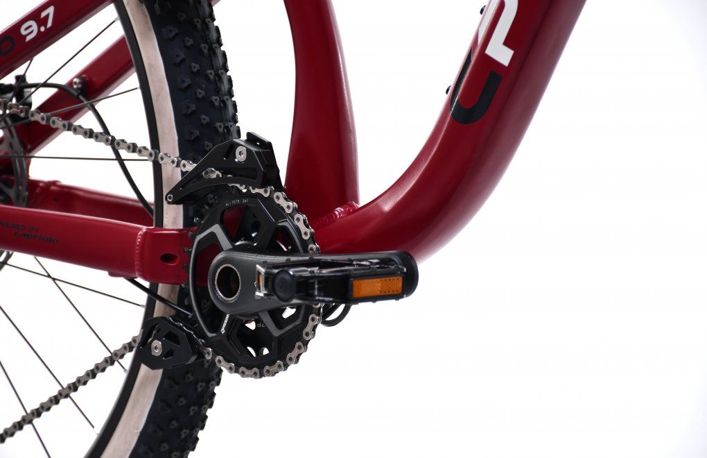 Model CPRO AL-MO 9.7 je mimoriadne zaujímavý celoodpružený bicykel s geometriou typu Race. Má rám z hliníkovej zliatiny 6061, ktorý je navrhnutý na prekonávanie náročnejších horských ciest a trás. Vyniká vysokokvalitnými tlmičmi – predným aj zadným AIR tlmičom, vnútorným vedením káblov a sadou prehadzovačky 1x12, kde sú radenie aj zadná prehadzovačka typu DEORE. Model sa tiež vyznačuje silnejšou dvojpiestikovou brzdovou súpravou, predným a zadným nábojom s priemyselnými ložiskami. Treba zdôrazniť, že obsahuje rýchloupínací systém THRU AXLE a nastaviteľnú sedlovku. Odporúčaná výška jazdca je 175–185 cm.